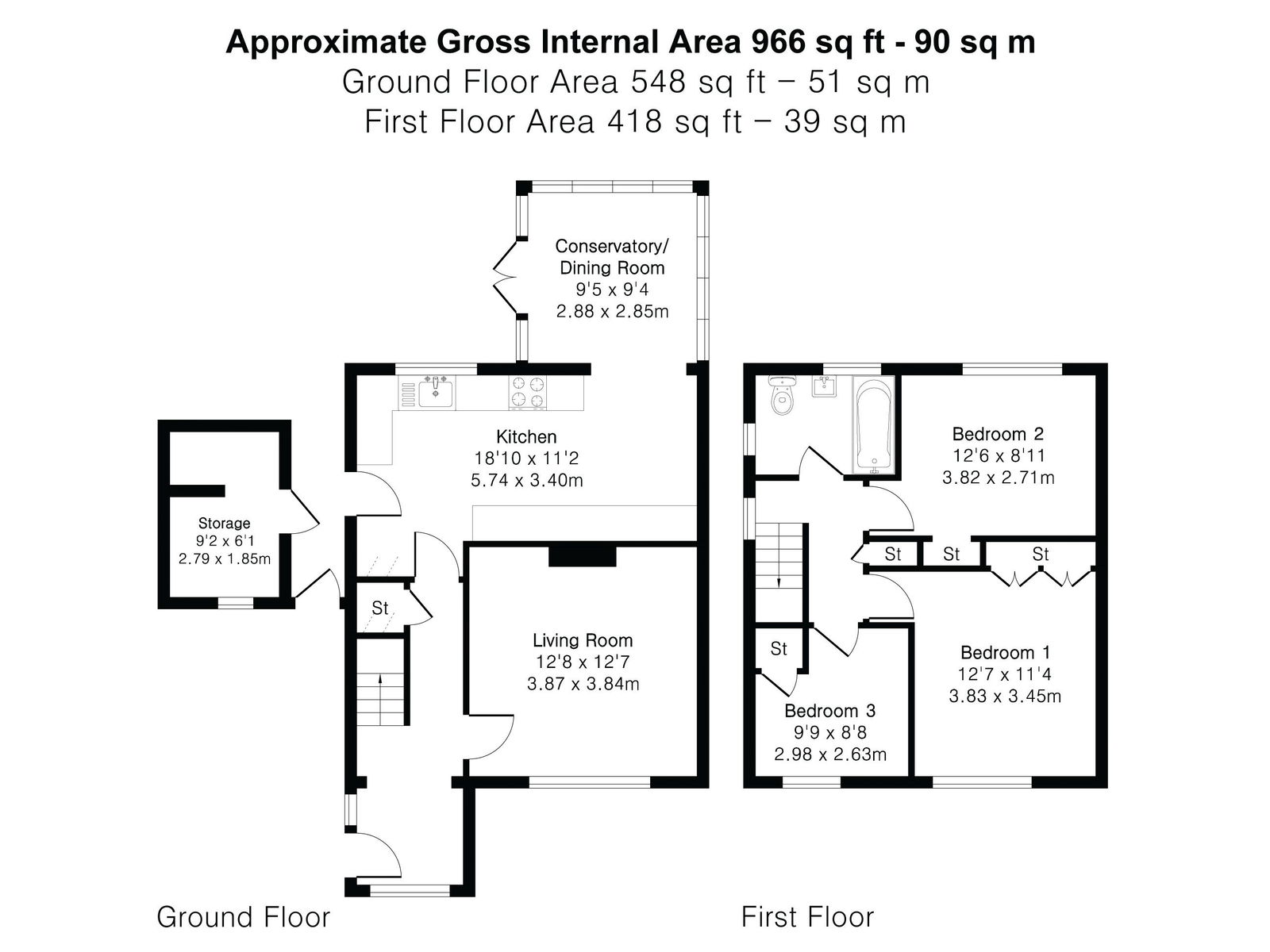 The ground floor features a front-aspect sitting room with a cosy wood-burning stove, perfect for family evenings. To the rear, a re-fitted open-plan kitchen/dining room opens into a conservatory with views across the impressive garden. An adjoining brick-built utility/store room adds practicality and convenience.