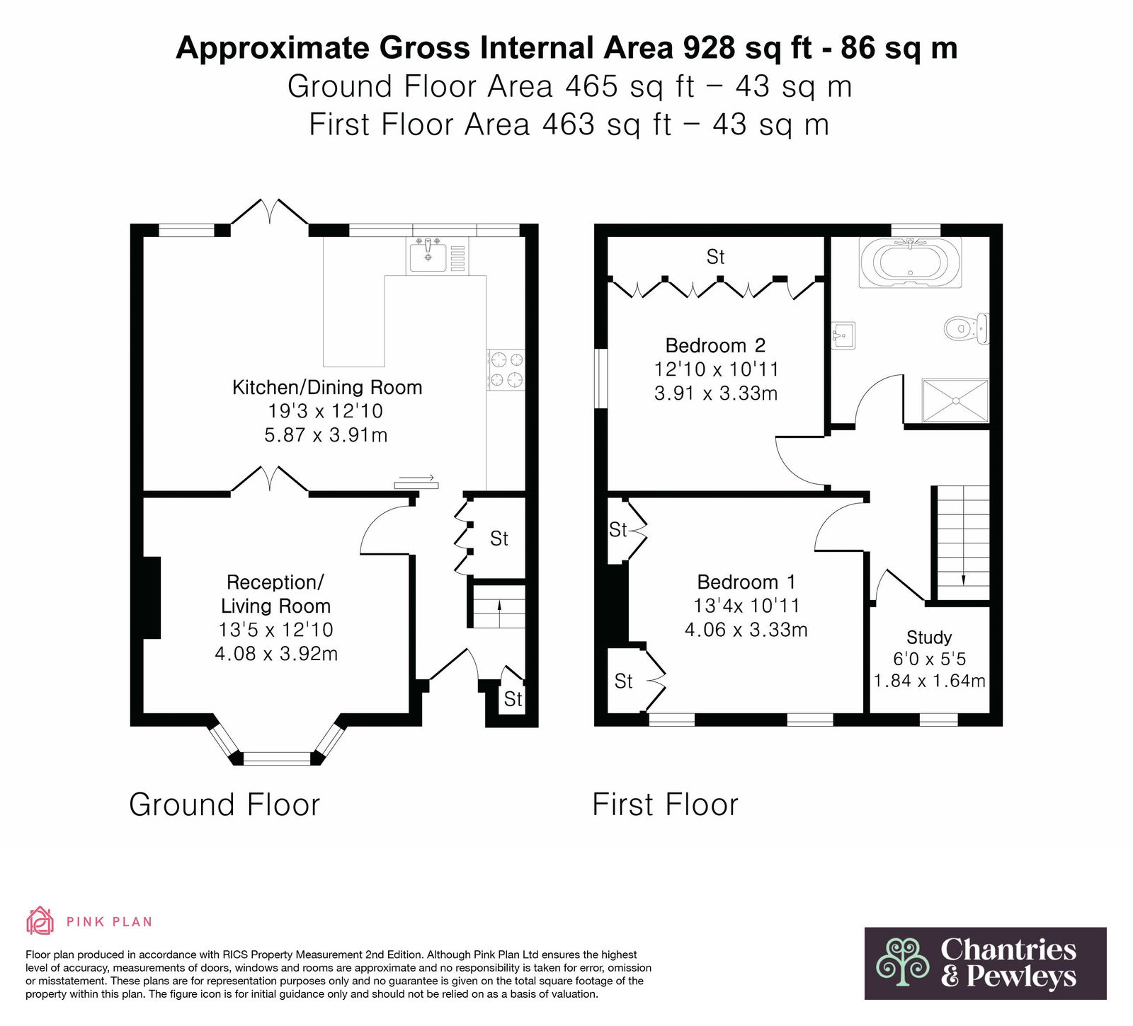 Upstairs there are two generous double bedrooms and a smart study room.  The bathroom is a beautiful blend of contemporary fittings and Victorian features like the fabulous roll top bath.