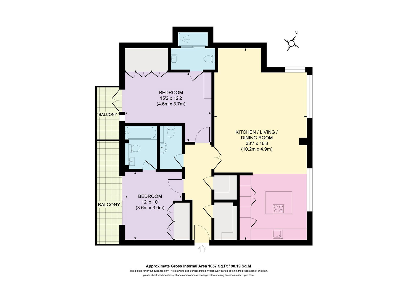Both double bedrooms are spacious and benefit from their own private balconies, perfect for enjoying the tranquil woodland surroundings. Each bedroom also has its own stylish en-suite, with the principal suite offering a luxurious layout complete with a generous walk-in rain shower and separate bath.