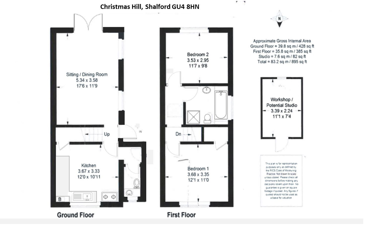 The beautiful setting of this delightful property is without doubt one of the main features – with views onto Shalford Common and up to Chantry Wood. The extremely pretty village of Shalford provides shopping for everyday needs along with a railway station, post office, village shop, chemist, two pubs, coffee shop, tennis and cricket club. There is an excellent selection of schools in the area including the highly regarded Shalford Infant and Pre-School. The beautiful surrounding countryside offers wonderful walking, riding and cycling opportunities. Guildford is approximately two miles away and has an extensive range of shopping and leisure facilities with the main-line station providing a fast and regular service to London Waterloo in approximately 35 minutes.