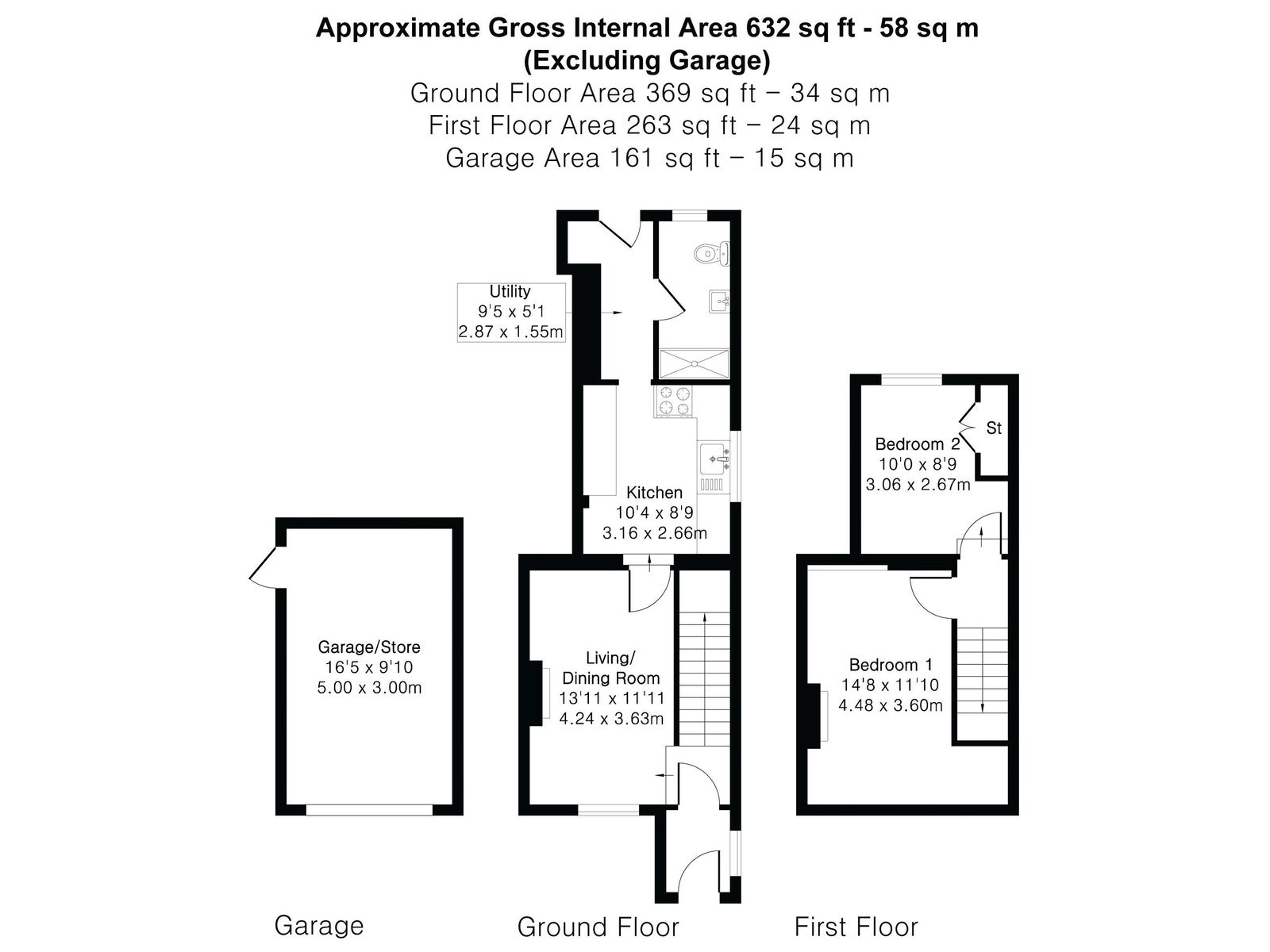 On the ground floor, the property offers a living room along with a kitchen and a shower room and access to the rear garden. Whilst on the first floor there are two double bedrooms. Outside there is a private rear garden and a garage.