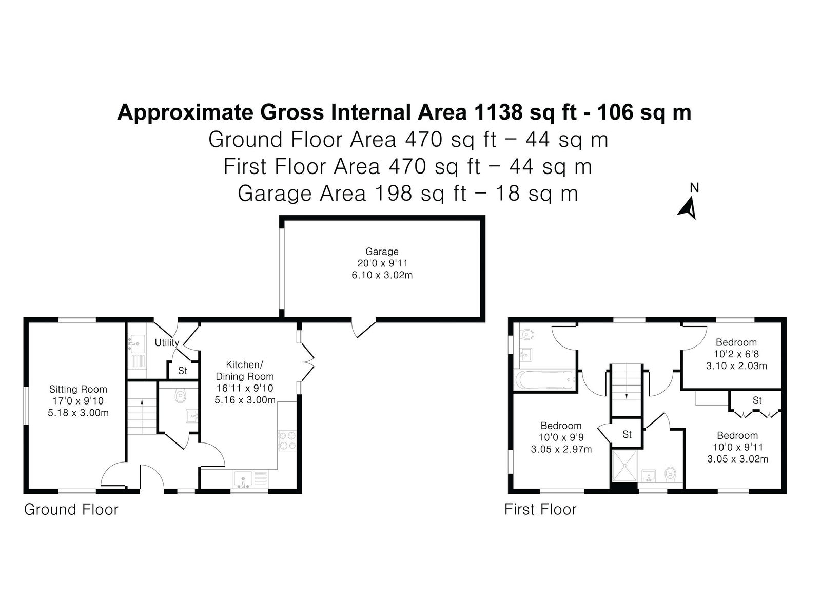 On entering, the hallway leads you to a kitchen/diner, with a stone floor and underfloor heating. The kitchen comprises of ample storage cupboards, single oven with gas hob and dishwasher. Double doors lead you out onto the patio area and lawn. The utility room has a sink unit and offers space for a washing machine and tumble dryer with side access where the parking and garage are located. The light and spacious triple aspect sitting room has been designed to maximise natural light and creates a warm and cosy area to relax with a recently installed oak engineered floor. There is also a downstairs cloakroom located on the ground floor.