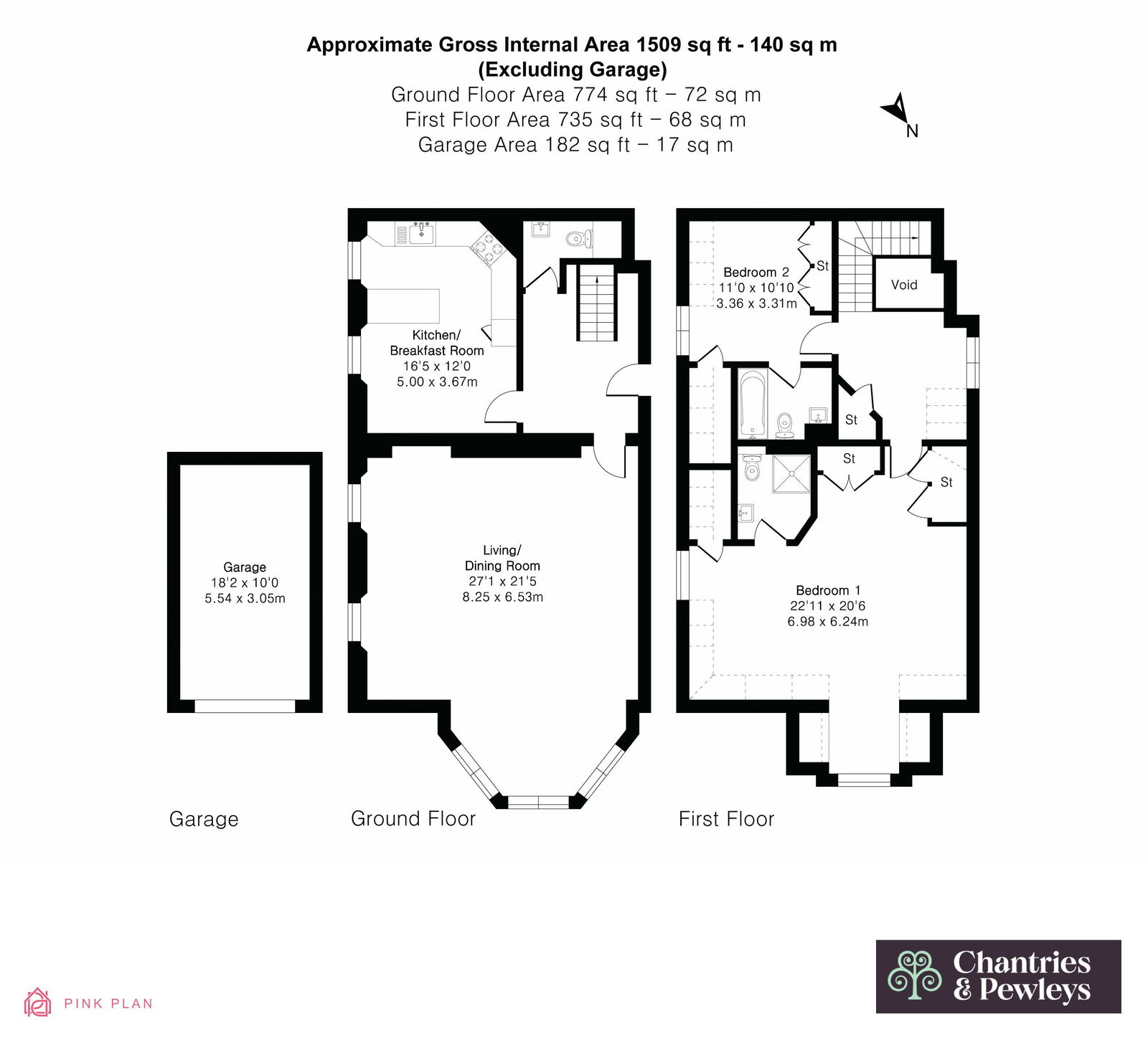 The layout is well suited to both everyday living and entertaining, featuring a vast reception room, a large kitchen/dining area and a cloakroom on the first floor. Upstairs, two generous ensuite bedrooms are filled with light and finished to a high standard.