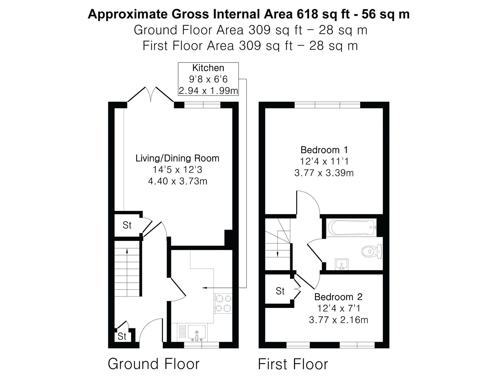 Upstairs, the main bedroom is a double. The second bedroom is a generous single and would also suit use as a study or nursery. The bathroom is modern in style and fitted with a white suite, including a bath with shower over, wash basin and WC. Recent renovations include laminate flooring throughout the ground floor and new carpets on the stairs and first floor.