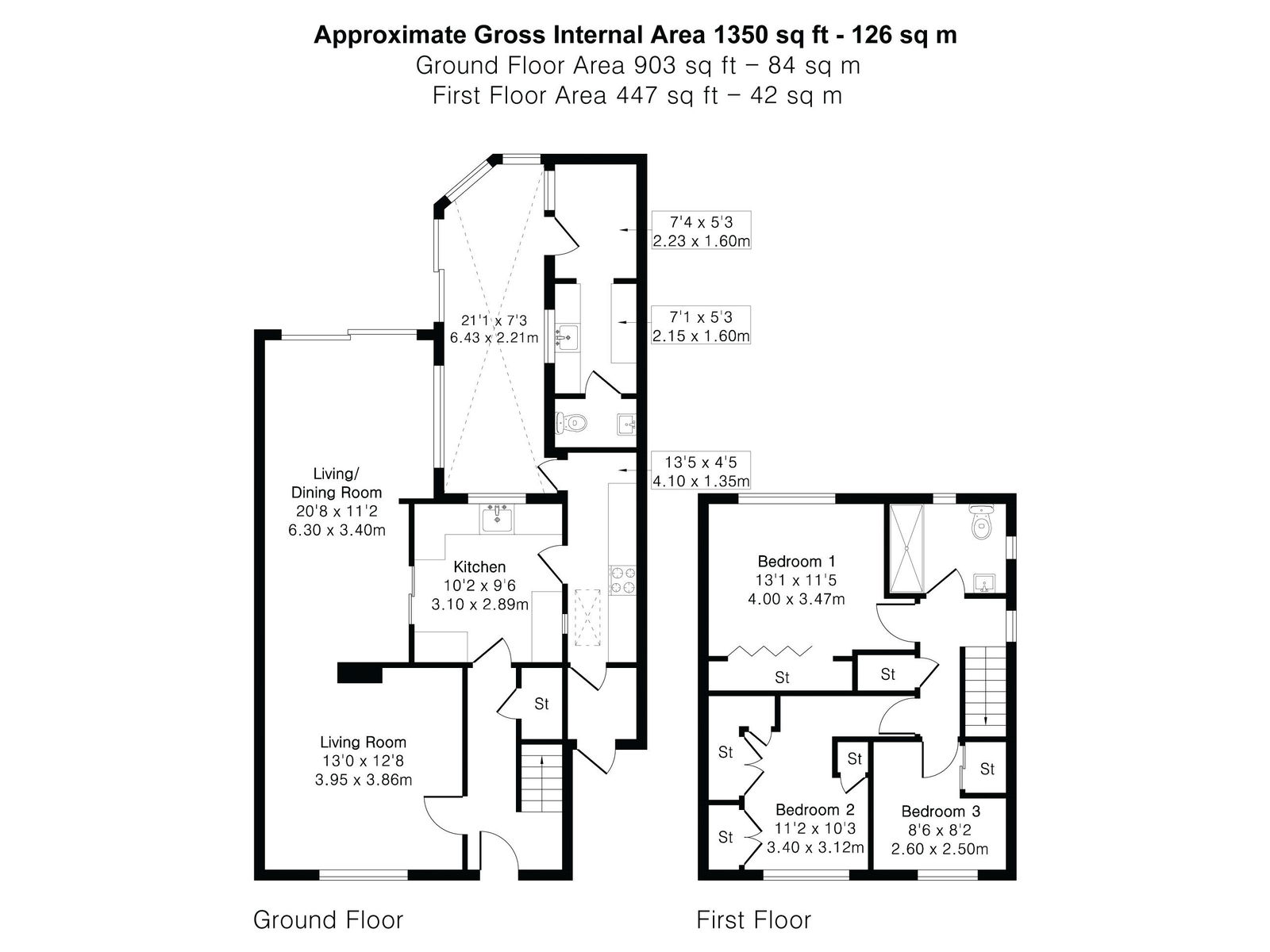 Upstairs, the home offers two double bedrooms and a further single bedroom, all served by a family bathroom. Each room benefits from good natural light and pleasant outlooks over the surrounding gardens.