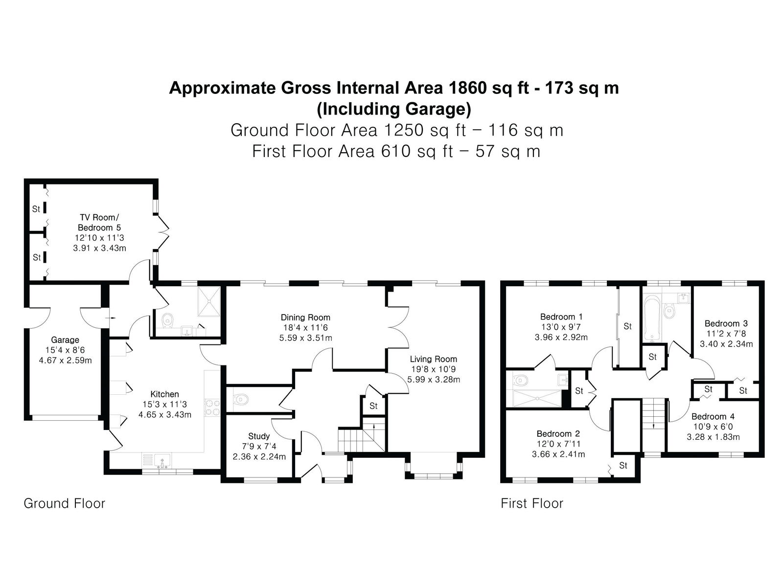 The property is accessed via a welcoming entrance porch that leads into a generous reception hallway. The principal reception room is bright and inviting, benefitting from natural light via a window overlooking the front aspect and sliding doors providing seamless access to the rear garden. Meanwhile, the spacious family room enhances the versatility of the home, featuring two sets of sliding doors that ensure the space is naturally illuminated and connects effortlessly to the outdoor entertaining area. The expansive kitchen/dining room is comprehensively fitted with a variety of base and wall units, providing excellent scope for modern living. Completing the ground floor is a dedicated study, a convenient downstairs WC, and a connecting inner hallway that provides access to the garage, a shower room, and the fifth double bedroom.