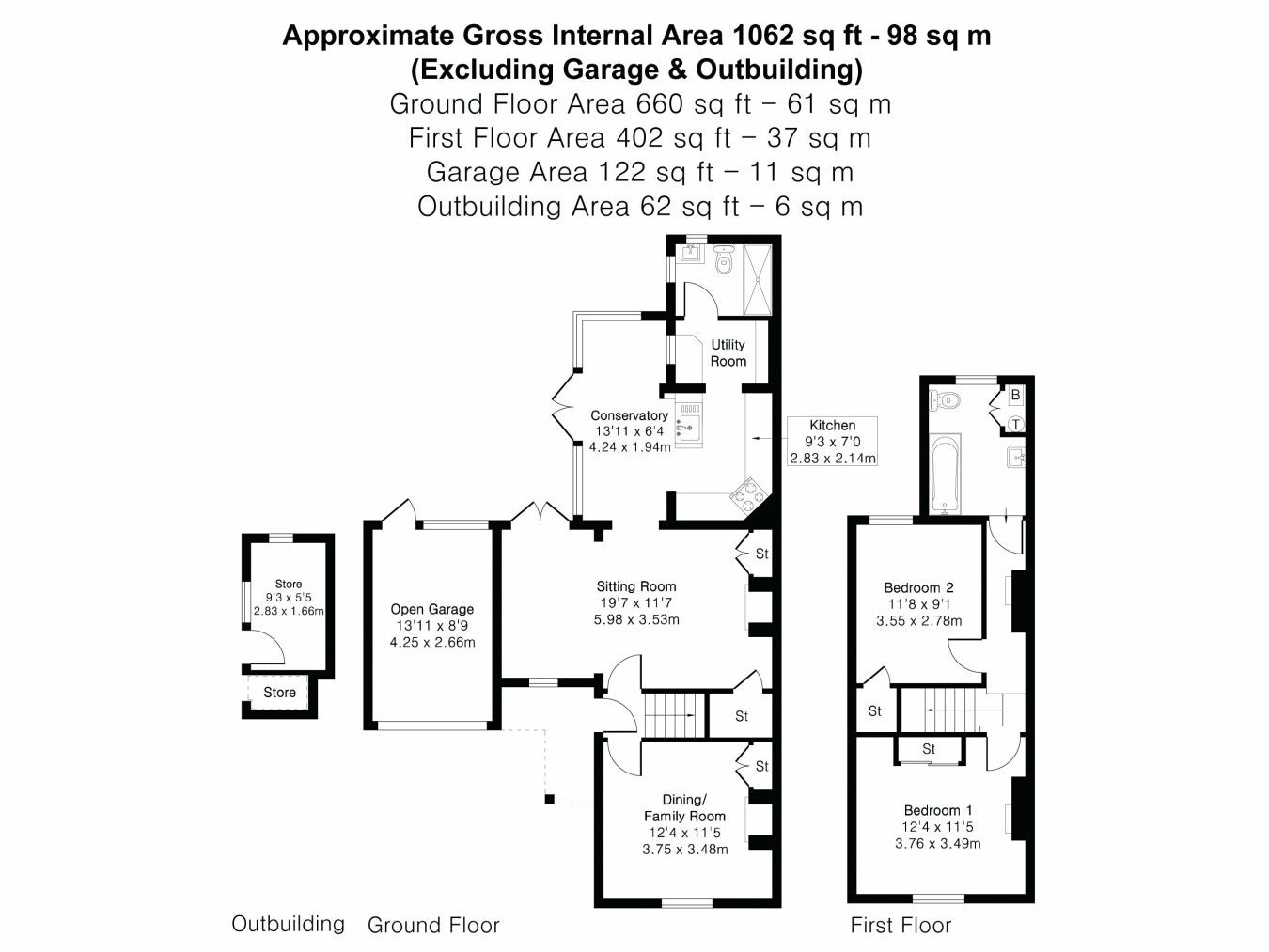 To the front of the house, the welcoming dining/family room enjoys delightful views across the green, creating a wonderfully atmospheric space for entertaining or relaxing. At the rear, the generously proportioned dual-aspect sitting room flows effortlessly into both the conservatory and the kitchen, allowing natural light to filter throughout the ground floor. French doors from the conservatory open onto a beautifully tended rear garden, providing a seamless blend between indoor and outdoor living.